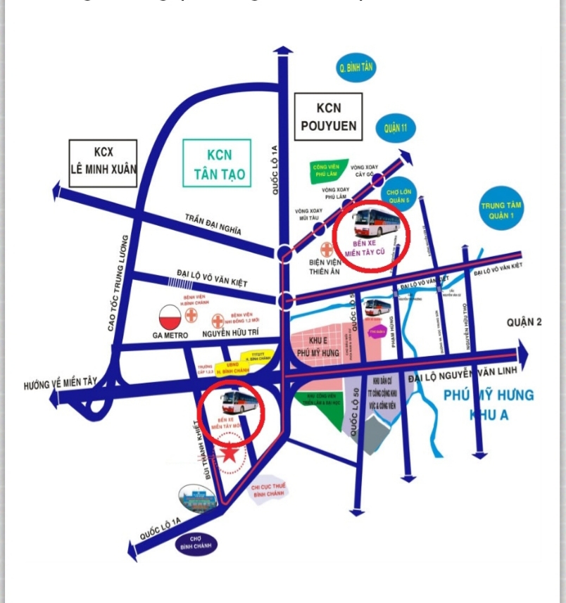 - Vị trí: bến xe miền Tây mới có vị trí tại xã An Phú Tây, Huyện Bình chánh