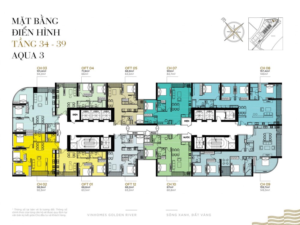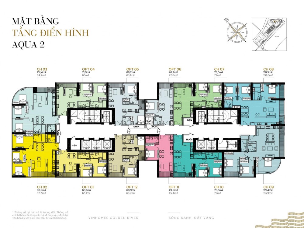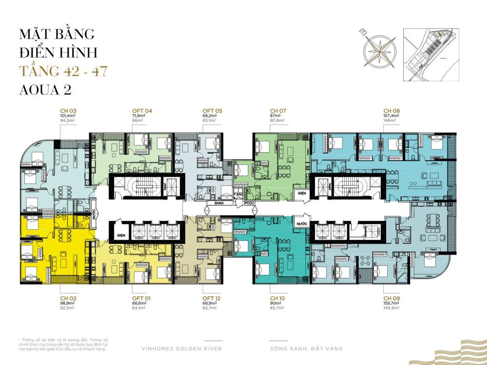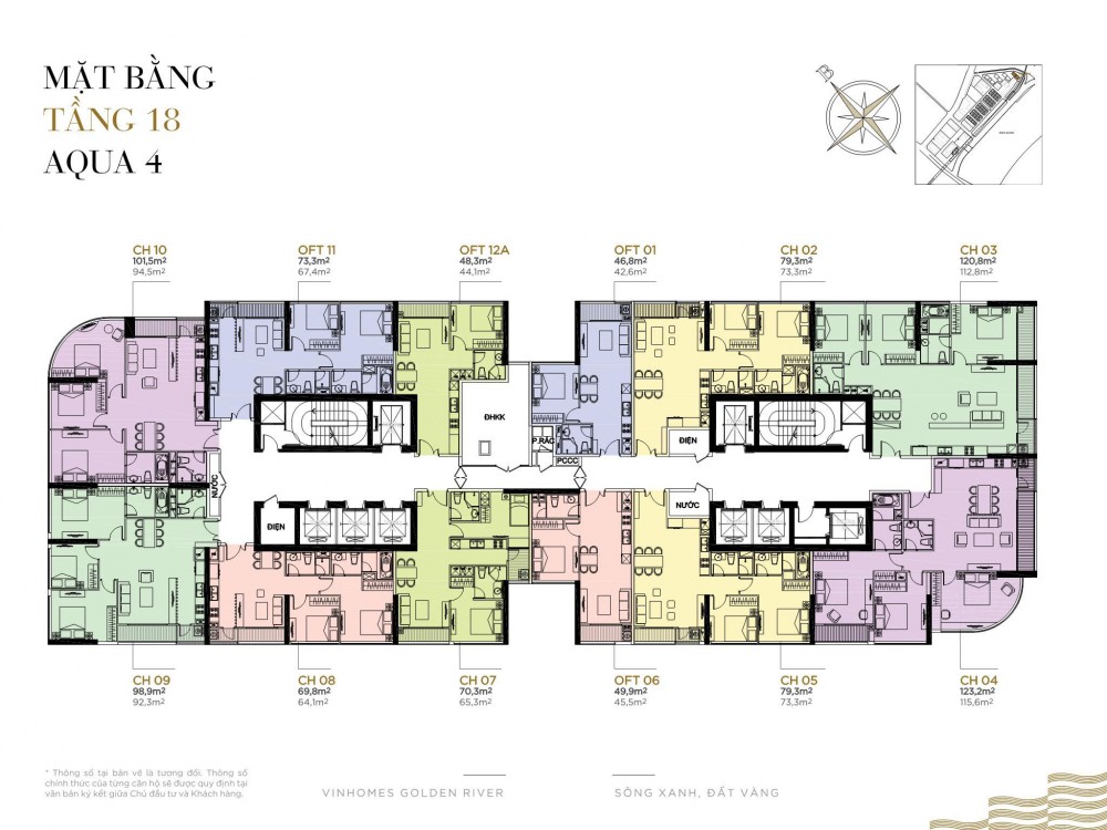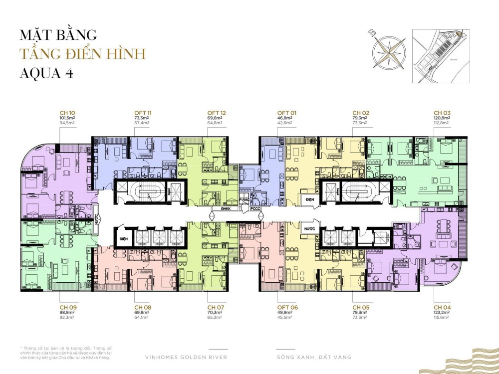 – Quy mô: Dự án căn hộ Vinhomes Golden River được quy hoạch và phát triển bao gồm 16 tòa tháp căn hộ, văn phòng, khách sạn và 63 căn biệt thự và được chia thành 4 phân khu chính.