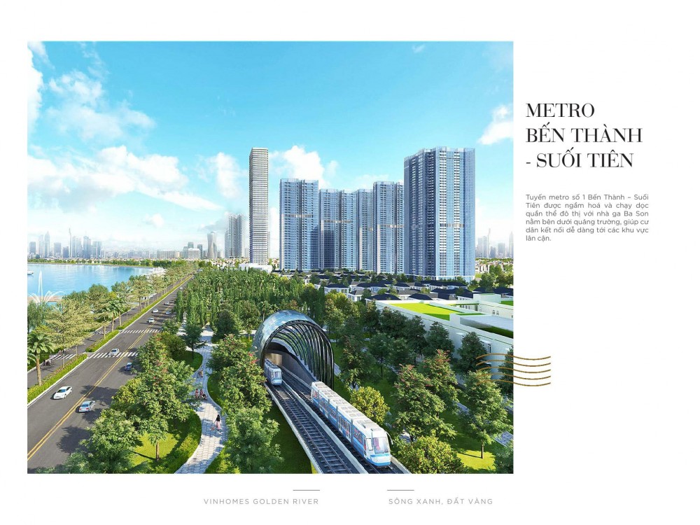 + Tuyến Metro Số 1: Bến Thành - Suối Tiên được ngầm hóa và chạy dọc quần thể đô thị với nhà ga Ba Son nằm bên dưới quảng trường, giúp cư dân kết nối dể dàng tới khu vực lân cận.